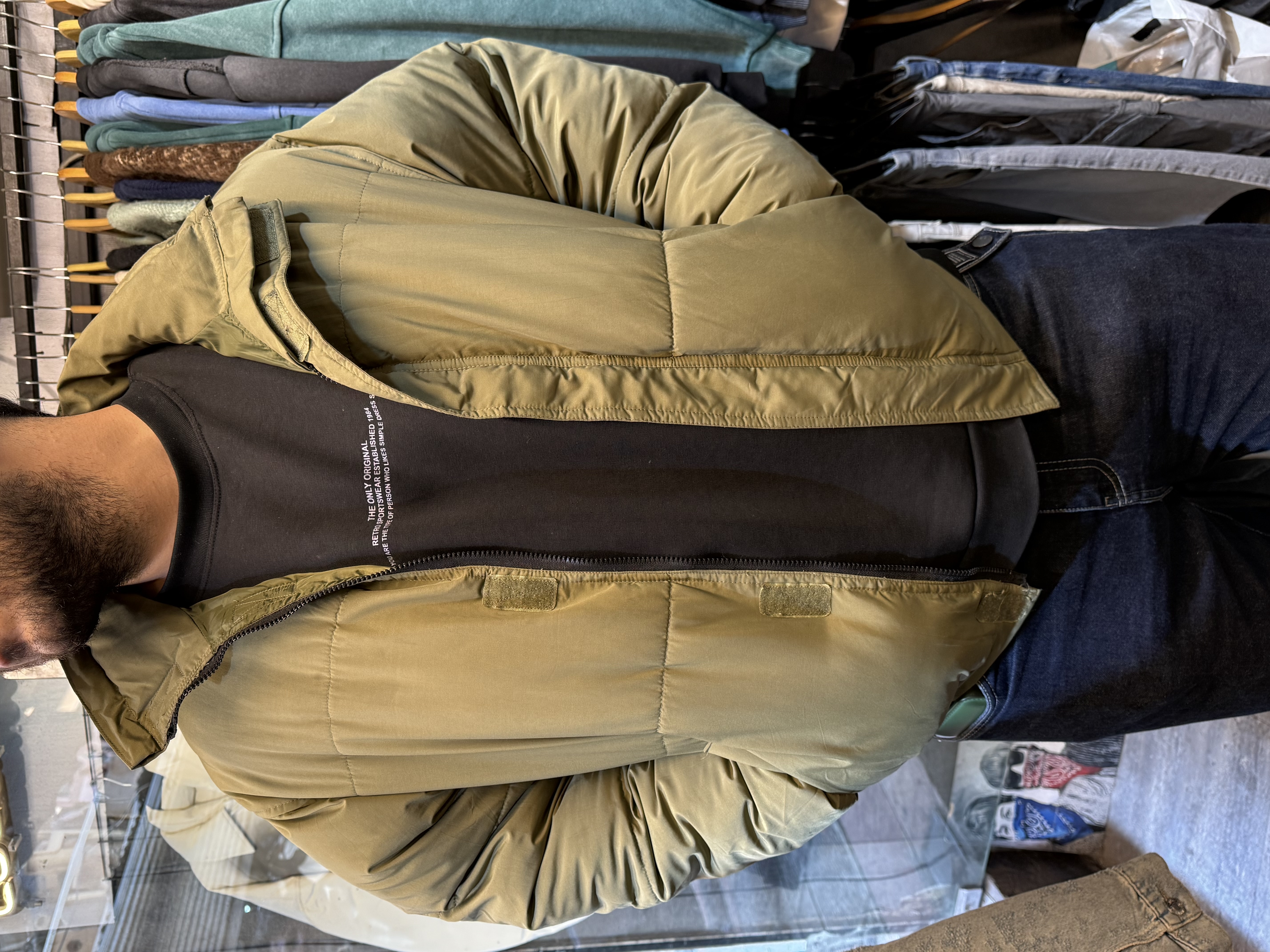 سایز L زیر بغل کاپشن 70 قد 70
